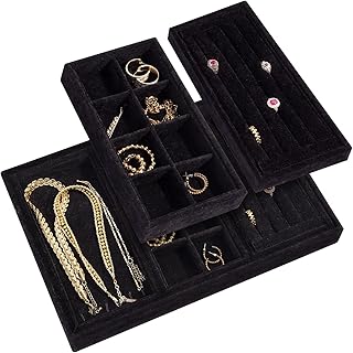 Houseables Schmucktablett, Organizer, stapelbares Zubehör, Aufbewahrung, 35.1 x 24.1 cm, schwarz, 4 Stück, Ohrringbox, Schubladeneinsatz, Manschettenknöpfe-Etui, verstellbare Trennwände