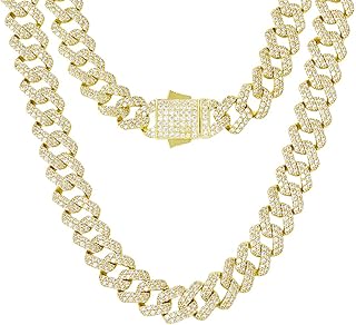 KRKC&CO 12mm Iced Out Panzerkette 14K Gold/Weißgold Herren Kette mit CZ Steine Cuban Link Chains Hip Hop Halskette für Herren Unisex Jungen Länge 45-60cm