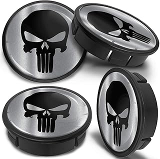 SkinoEu 4 x 60mm Universal Schwarz Silber Schädel Alufelgen Nabenkappen Felgen Kappen Felgendeckel Radkappen Radnabendeckel Nabendeckel Felgenkappen CX 20