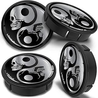 SkinoEu 4 x 60mm Universal Schwarz Silber Schädel Yin Yang Alufelgen Nabenkappen Felgen Kappen Felgendeckel Radkappen Radnabendeckel Nabendeckel Felgenkappen CX 11
